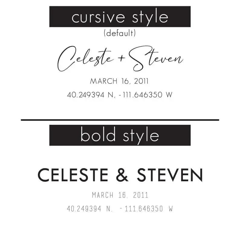 Personalized names, date, place, and coordinates